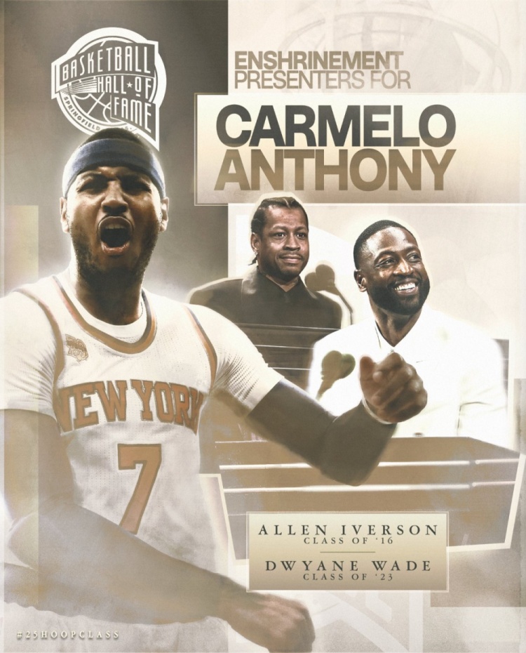 8月8日讯 据官方报道,卡梅隆-安东尼已经选择了韦德和艾弗森作为自己入选名人堂的引荐人。